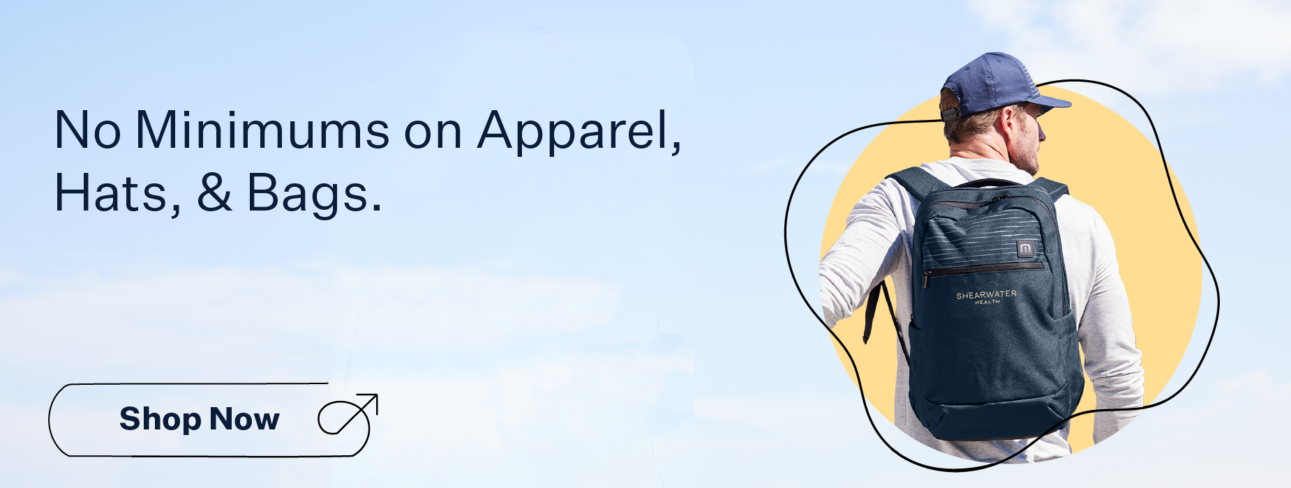 - We have a great selection of apparel, hats, and bags available in single quantities.